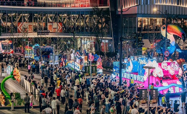 夜色光影奇遇。上海旅游节25辆花车巡游点亮街区,《崩坏:星穹铁道》“长夜月”水母痛街、《明日方舟:终末地》“协议核心”未来感激光秀、咻咻“次元光镜”、巨嘴鸟拓拓“梦幻岛”泡泡光影秀,串联起夜间多重光影盛宴。